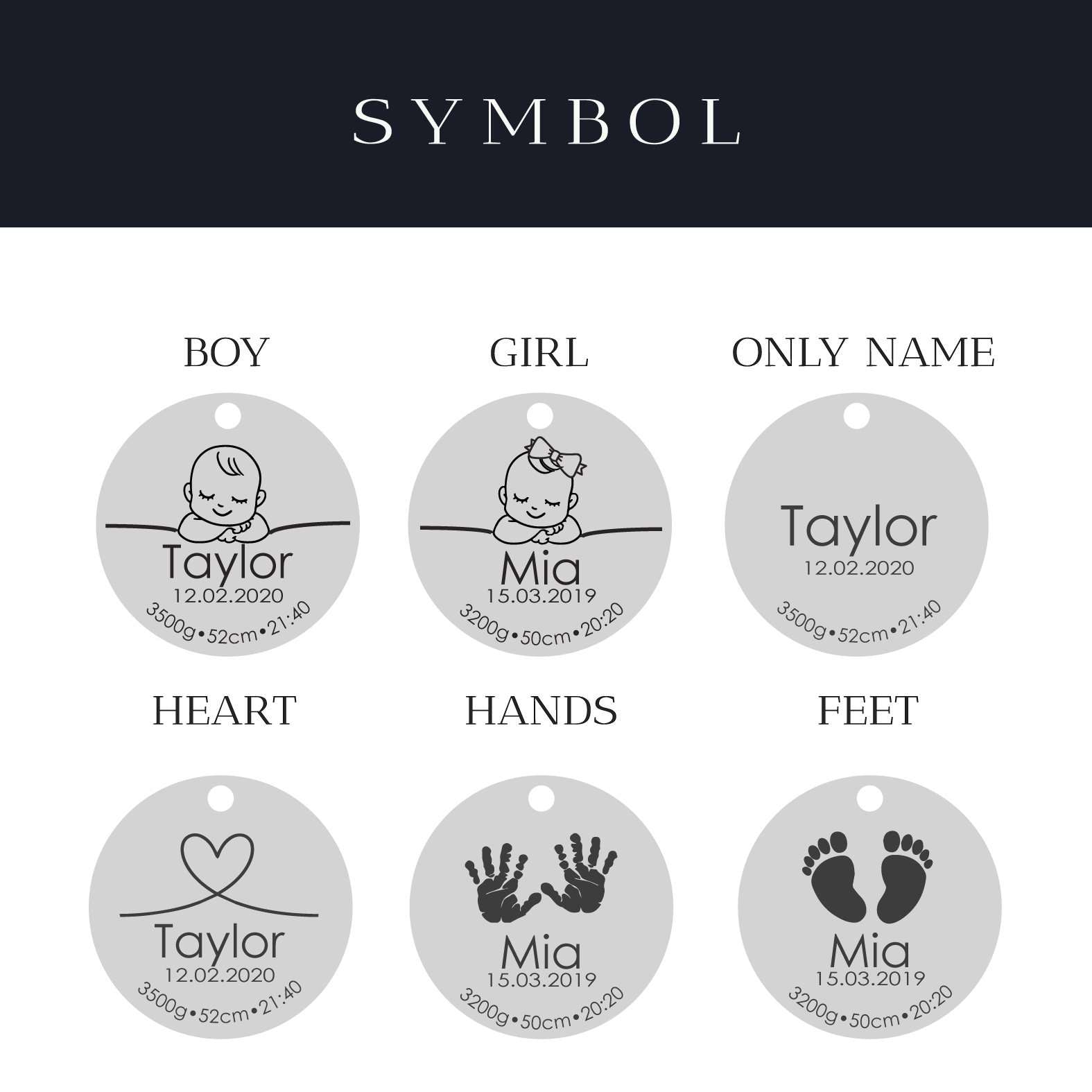 قياسات التعليقة: صغيرة 12x12x1.5 مم، كبيرة 19x19x1.5 مم